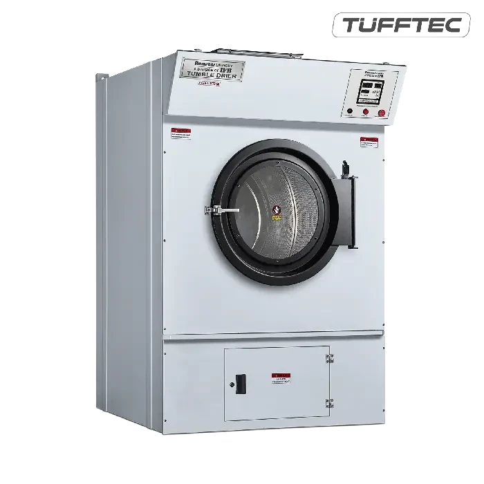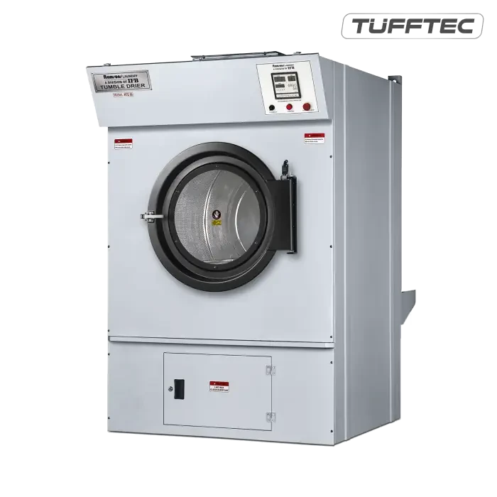 The Tufftec Tumble Dryer has a special radiator/ heat exchanger design that maximises drying performance and efficiency to deliver perfect drying. In addition, it come equipped with a programmable microprocessor control system. Cooling down damper and fire supression systems are also available as options.